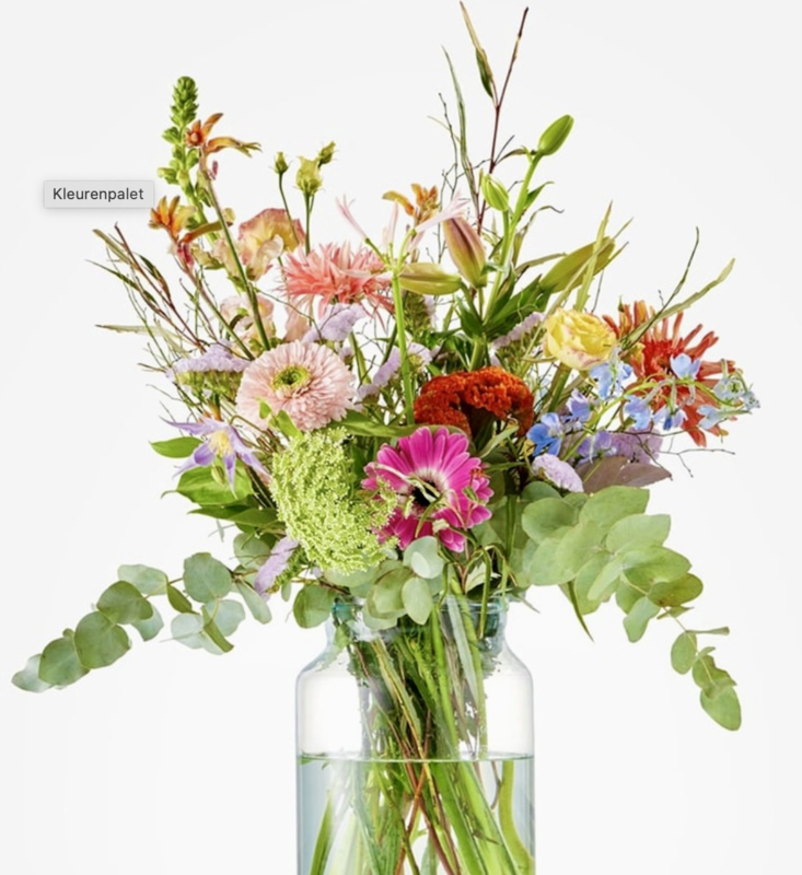 De foto is indicatief, de kleuren en samenstelling kunnen variëren naargelang het aanbod van de bloemen op het moment van je bestelling.€ 30,00